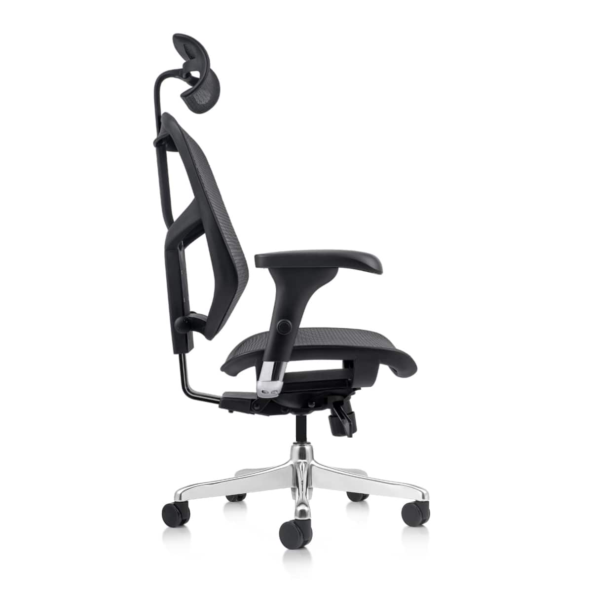 Когато седнете в него и се облегнете назад, ще усетите как гърба ви заема удобна поза, благодарение на използваната за тапицирането на гърба еластична мрежа. Регулируемата опора за глава се променя по височина и наклон. Това се отнася и за промените свързани с облегалката на работния стол. Така тя максимално ще пасне на гърба ви.